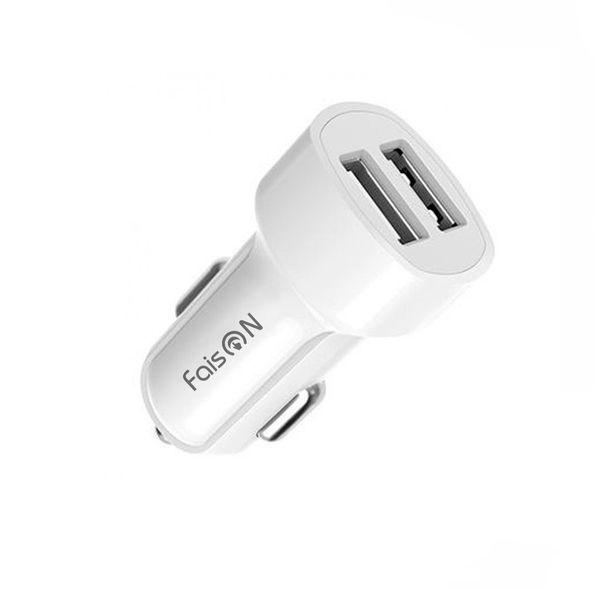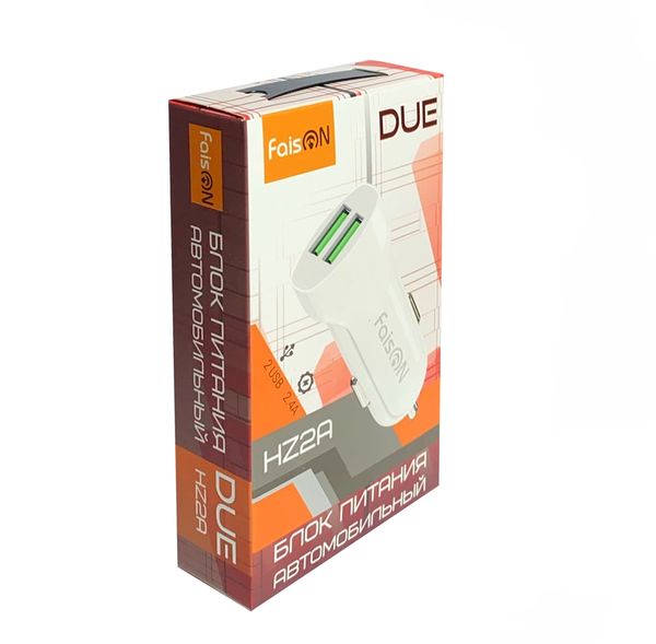 Блок питания автомобильный 2 USB FaisON HZ2A, DUE, 2400mA, цвет: белый, мятая упаковка